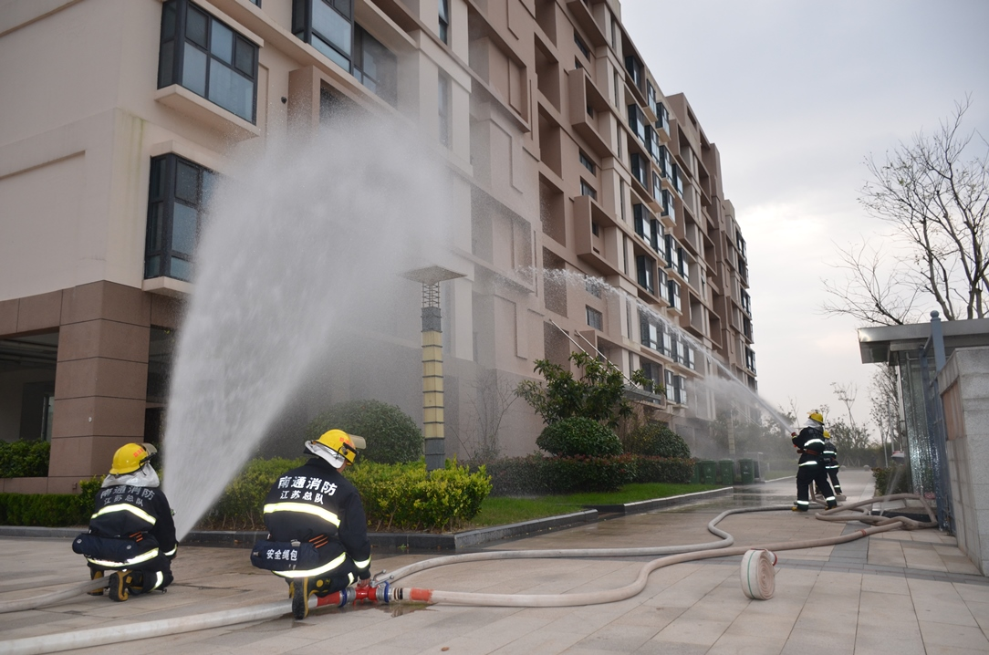 为了提高在城师生的安全意识以及应急逃生技能, “11.9消防安全日”之际,通州湾科创城、示范区消防大队和苏州东吴物业管理有限公司联合江苏商贸学院1500多名师生在A03公寓楼开展消防演练。 11月7日16时,随着总指挥演练指令下达后,消防演习烟雾弹的点燃和警报的拉响,A03地块1、2、3、4、5、6号公寓楼里的商贸师生,按照预定路线,用毛巾捂住口鼻,迅速有序地疏散到集结点,用时4分40秒,学生会负责清点人数,确认无人受伤后,向总指挥汇报集合情况。消防大队接警后,专职消防员驾驶消防车火速赶到,六名消防员立即展开救援,现场展示水枪灭火等动作。