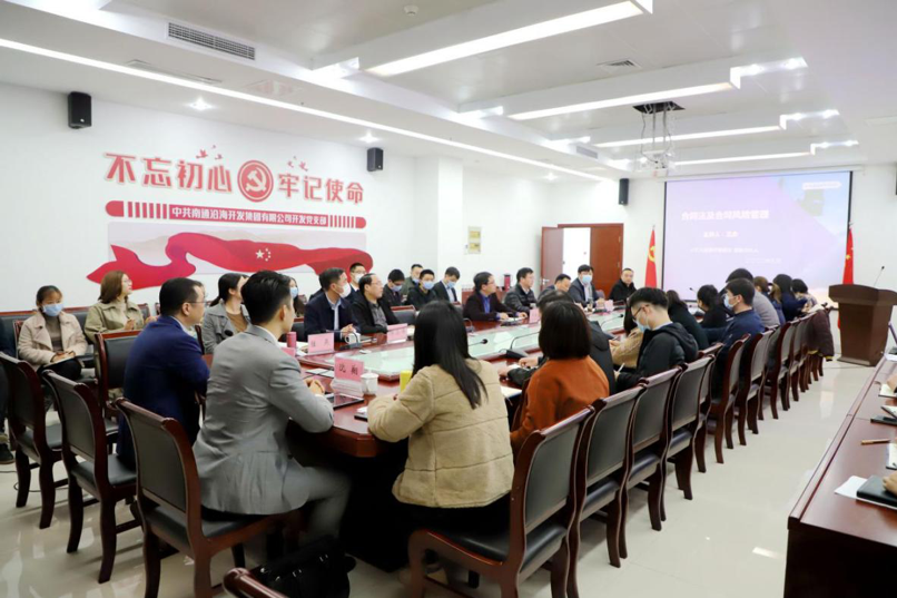 为进一步增强广大干部职工的法律意识和从业水平,提高“知法、懂法、守法、用法”的能力,3月26日下午,江苏通州湾投资开发有限公司在522党员活动室举行主题为“合同法及合同风险管理”的法律知识讲座。讲座特别邀请北京大成(南通)律师事务所高级合伙人王念律师讲授法律知识,开发公司副董事长张海荣及公司60余名干部职工参加专题讲座。