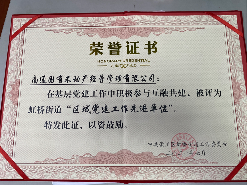 近年来,不动产公司充分发扬党员同志的先锋模范作用,积极推进党建工作,受到辖区街道党工委和居民朋友们的好评。7月2日下午,虹桥街道“庆祝建党100周年”主题活动在南通开放大学中远路校区15楼会议室召开,我司作为街道优秀区域党建单位受到中共崇川区虹桥街道工作委员会表彰,被授予“区域党建工作先进单位”荣誉称号。